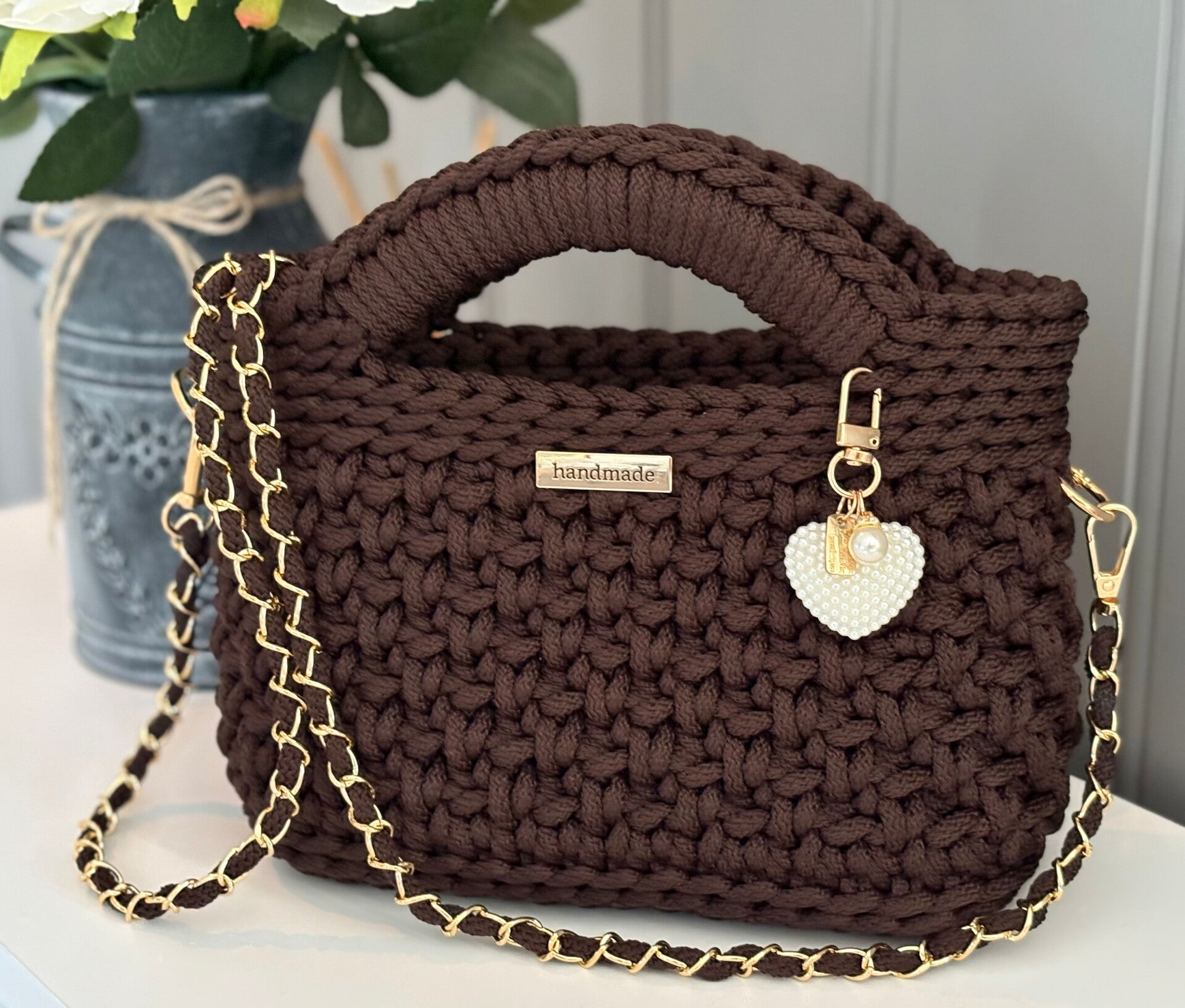Liten / Heklet skulderreim / Gull detaljer / Med Pynte Dusk - kr 500,00