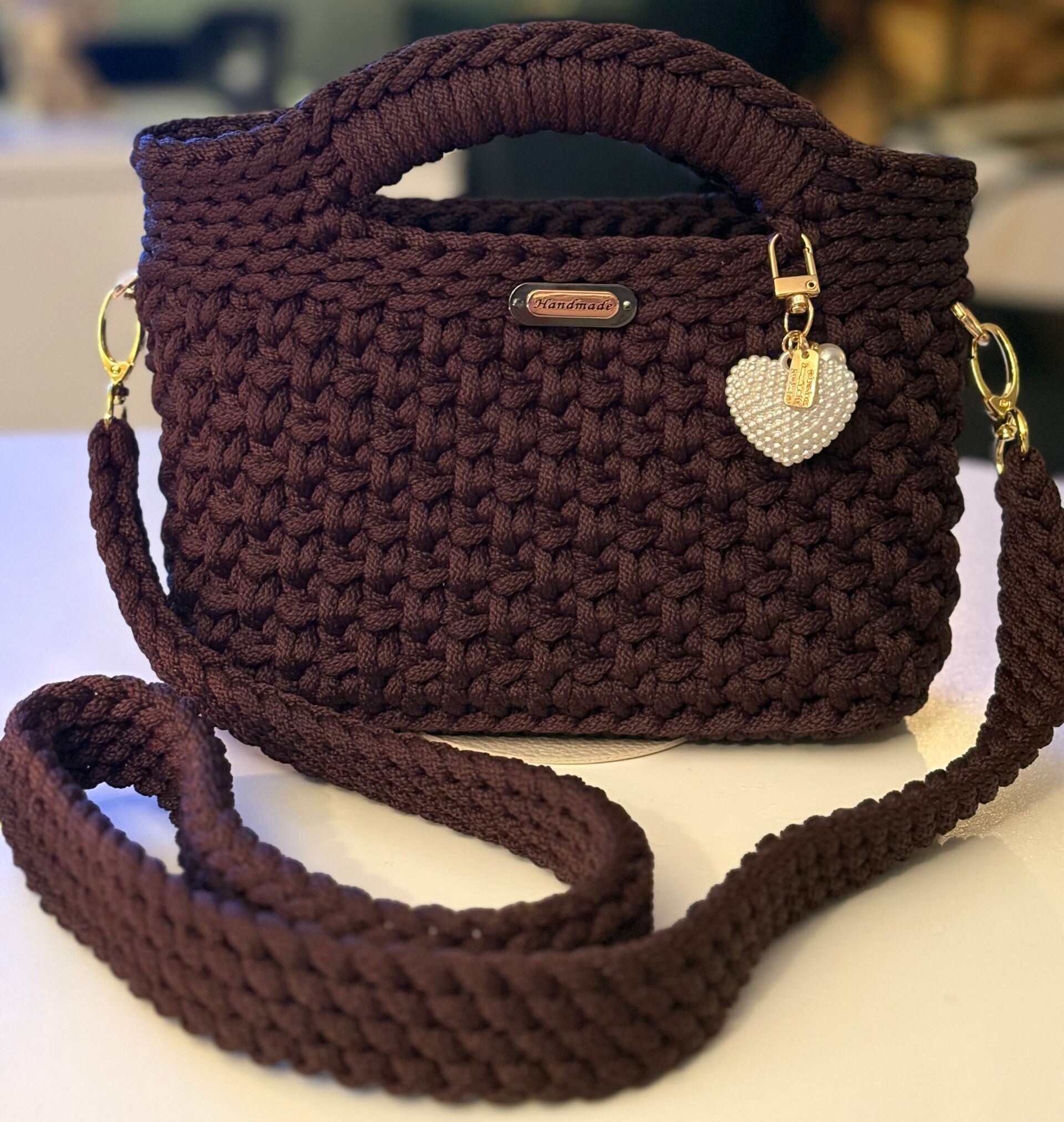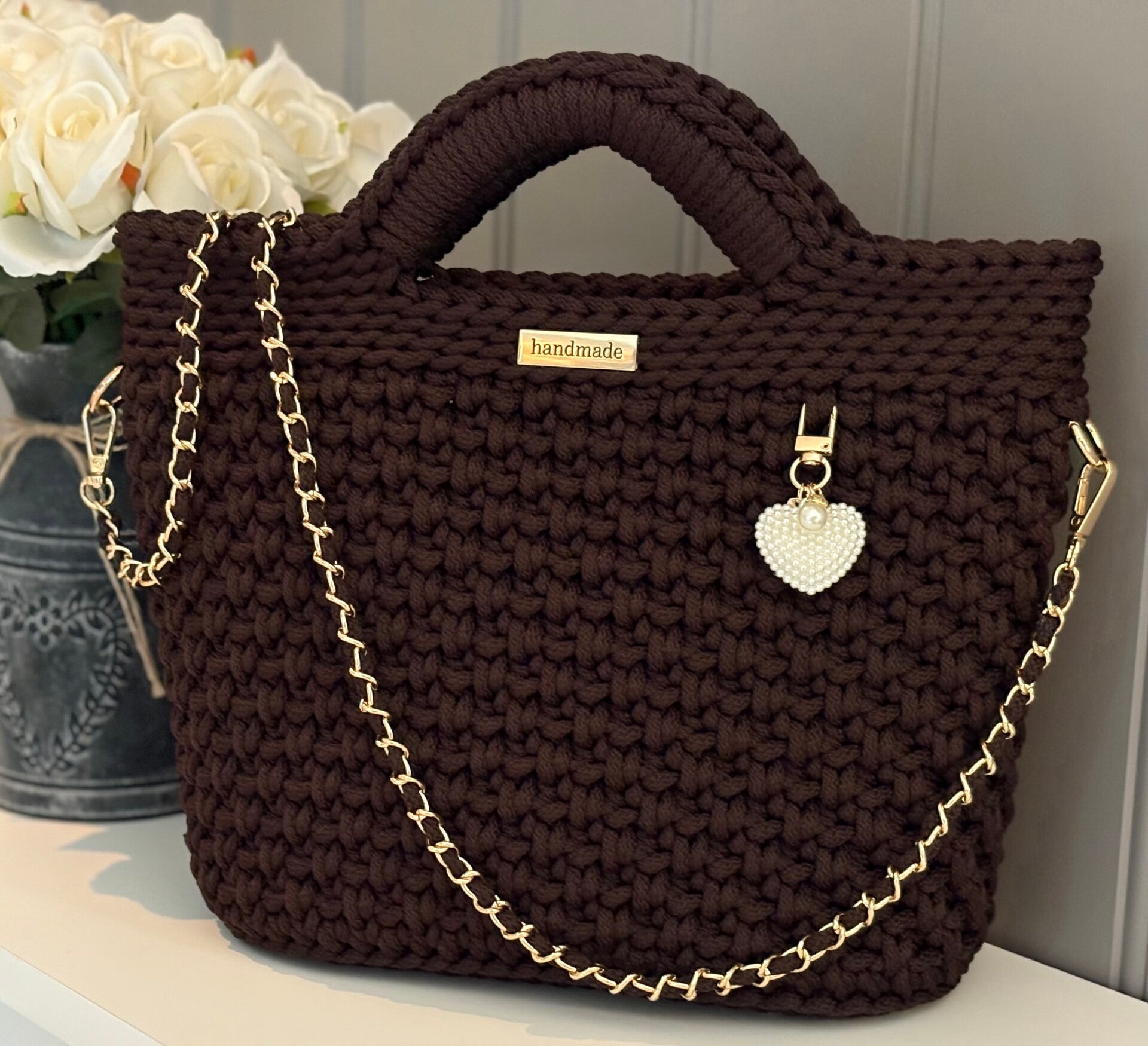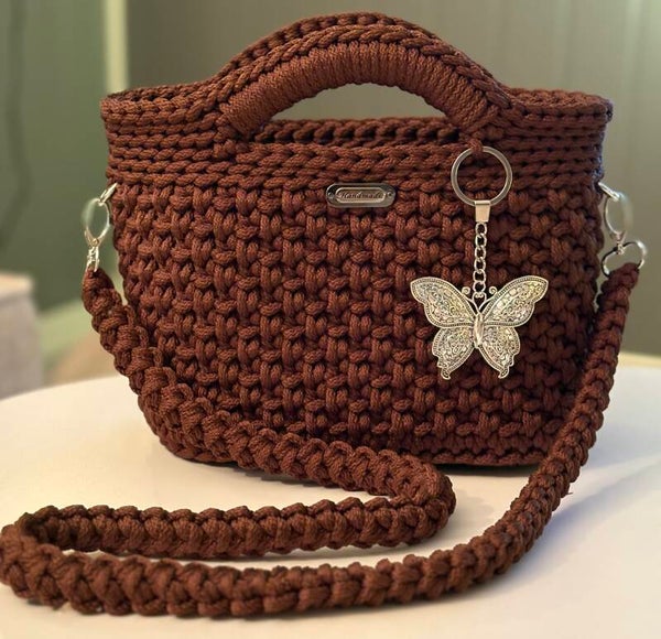 Stor / Heklet skulderreim / Gull detaljer / Med Pynte Dusk - kr 800,00
