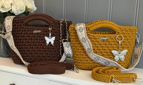 Ønsker du en skulereim å bytte med kan du enkelt legge til en ekstra her. Heklet reim lages i den fargen du har bestilt på vesken. Metallenken lages med tråd i valgt farge på vesken.