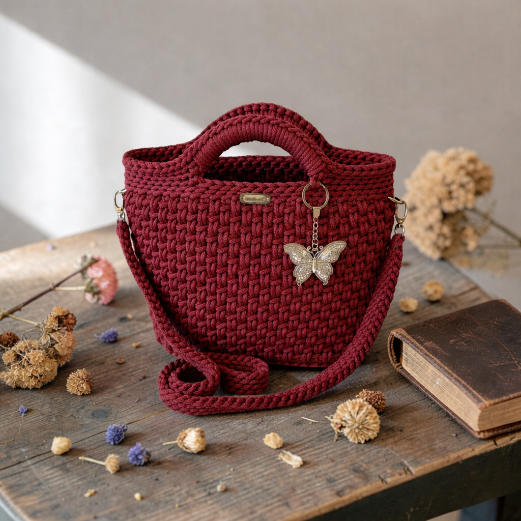 Vesken på Bilde er stor i farge 52 Gammelrosa med sølvdetaljer.